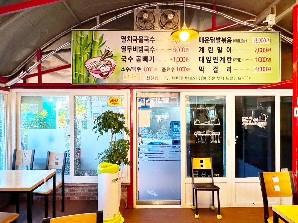 고물가 시대에 상대적으로 저렴해 보이기도 하지만 사실 비빔국수에 별로 들어간게 없다보니 양이 많더라도 가성비 좋다는 느낌은 없었는데 이 곳의 멸치국물국수는 무려 5,000원 열무비빔국수도 6,000원이라 과거로 돌아간 느낌이었어요.